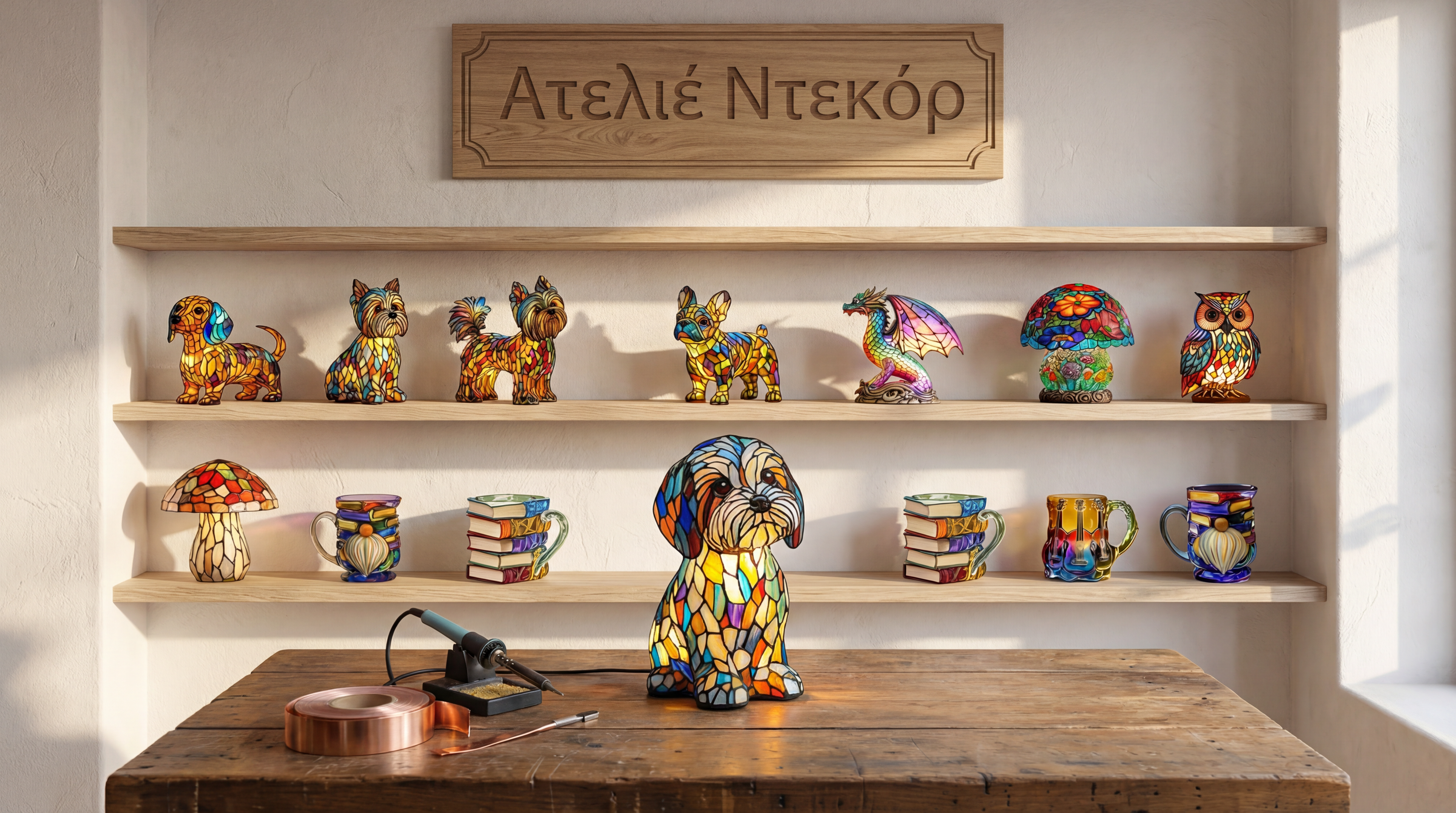 Κατασκευασμένα από εκλεκτό βιτρό και διαμορφωμένα στο χέρι, τα φωτιστικά μας φέρνουν τον χαρακτήρα και τη λάμψη της διαχρονικής τέχνης στο σπίτι σας — χωρίς να χρειάζεται εισιτήριο για γκαλερί.